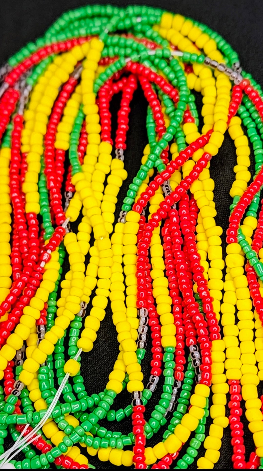 Bold. Rooted. Revolutionary. The Marley waistbead embodies the rhythm of liberation and the heartbeat of unity. Crafted in the iconic red, yellow, and green — colors that honor Rastafari spirit and the legacy of Bob Marley — this strand radiates strength, peace, and pride.