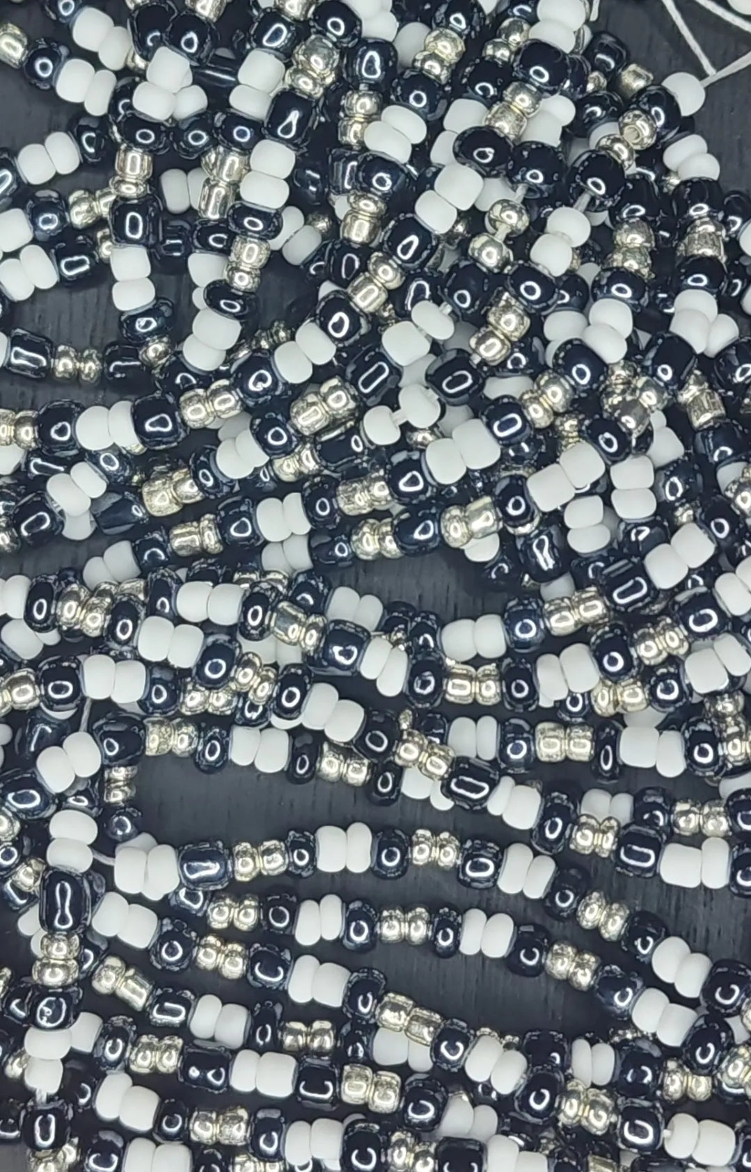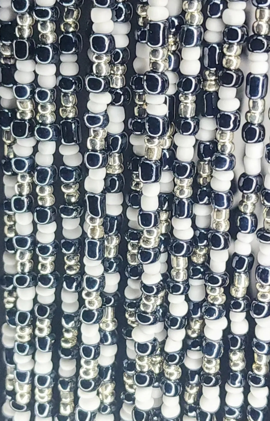 Studded with white, silver, and metallic beads in dedication to power and being born again of self! Obatala is a supreme diety in Yorba's Orisha pantheon. It is Obatala who shapes the child in the womb. Both male and female, Obatala is the most benevolent, most wise, and infinitely powerful.