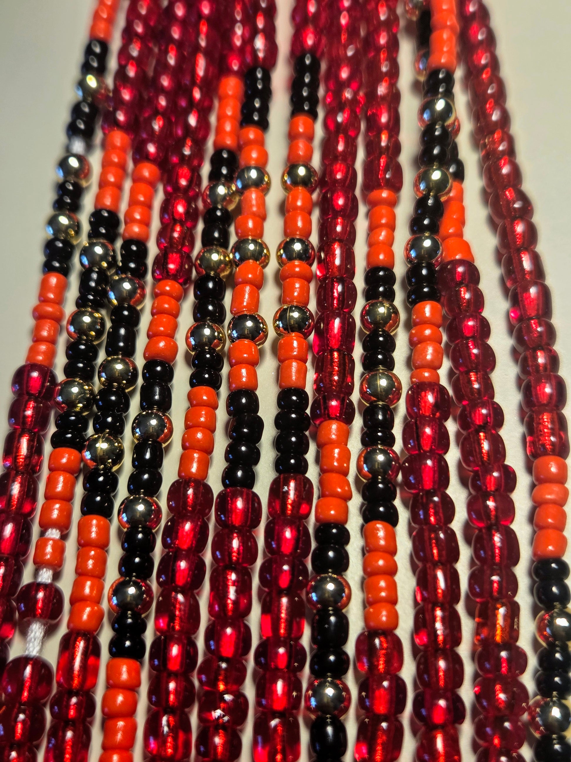 Crafted with the potent duality of shadow and flame, this Scorpio waistbead embodies the mystery, power, and raw allure of the zodiac’s most enigmatic sign. Black beads represent depth, protection, and emotional intensity, while fiery red pulses with passion, power, and regeneration. Gold-filled spheres offer a gleam of Scorpio’s hidden wealth—inner and outer.