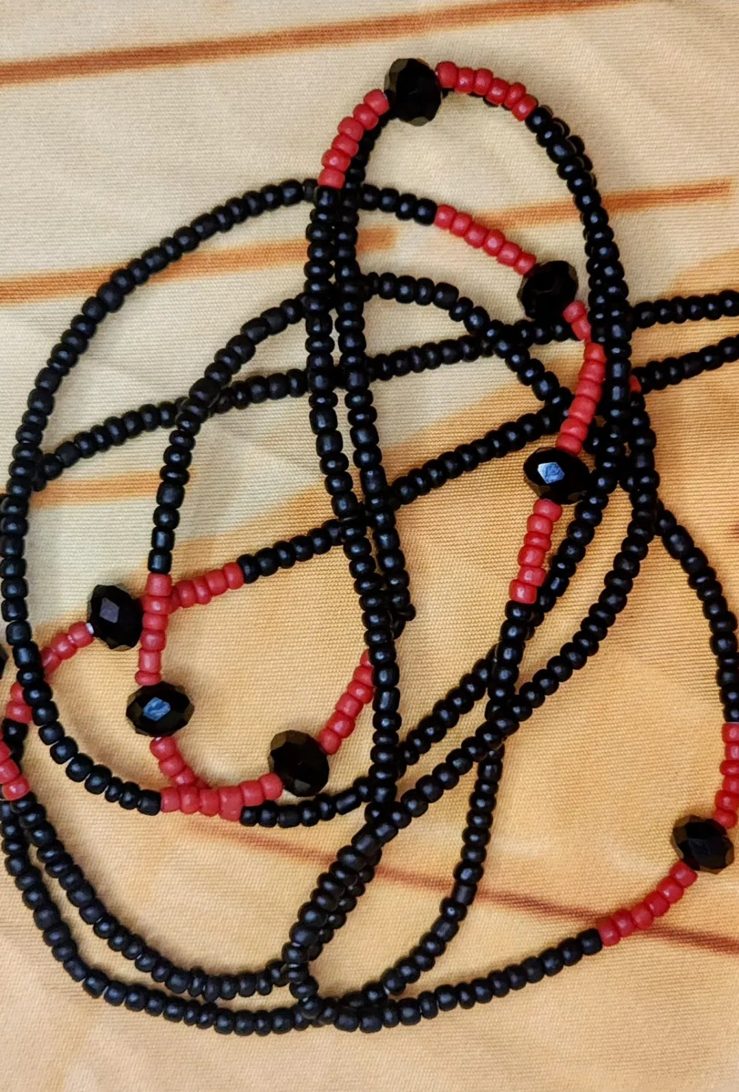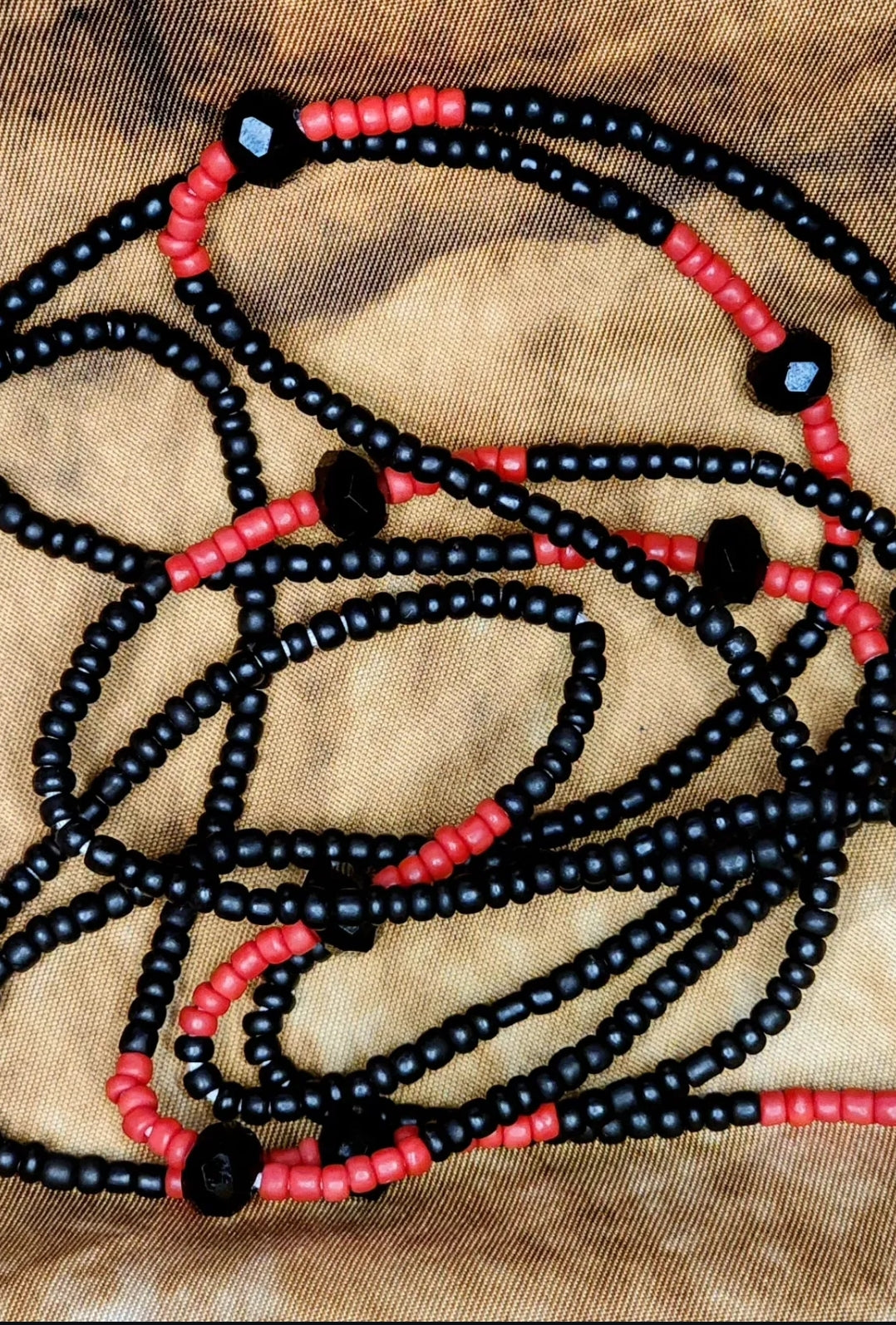 Strictly Business waistbead gets straight to the point of business with a pattern of matte black and red beads studded with black rondelle beads. Empowerment is your right and when you mean business you select this beautiful piece right here.