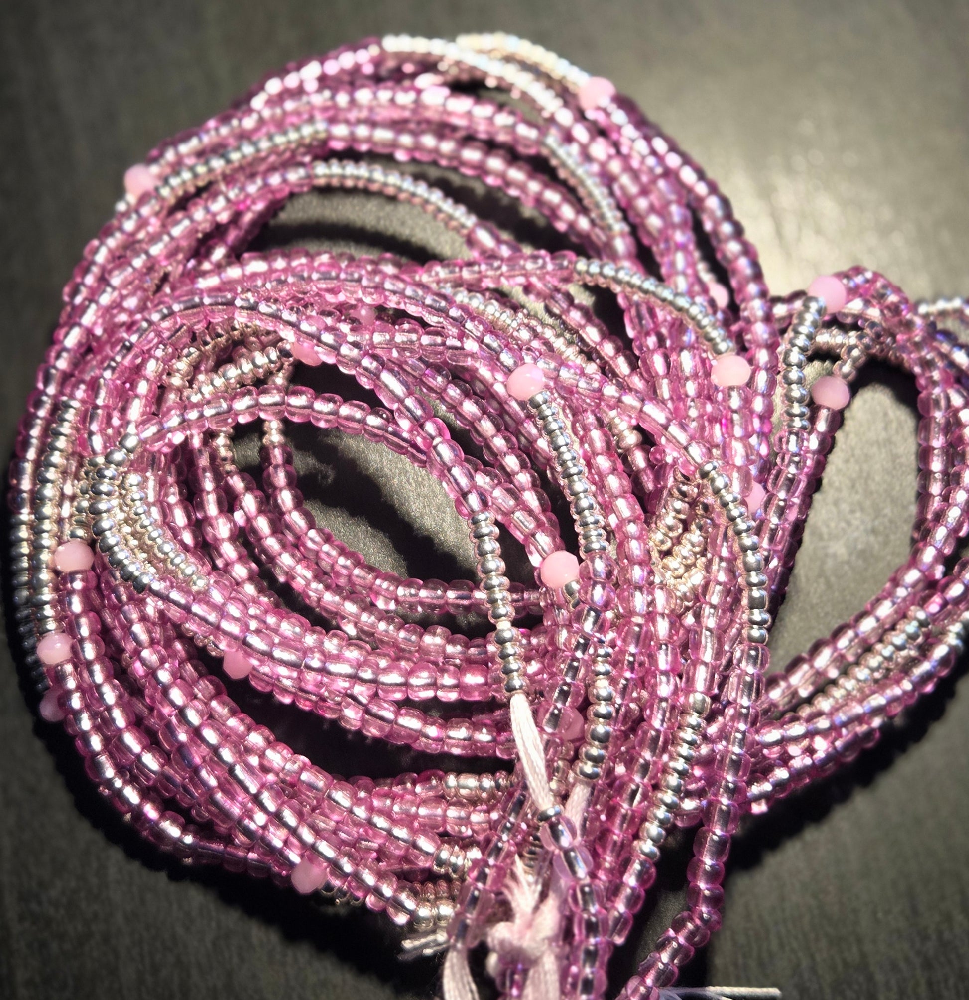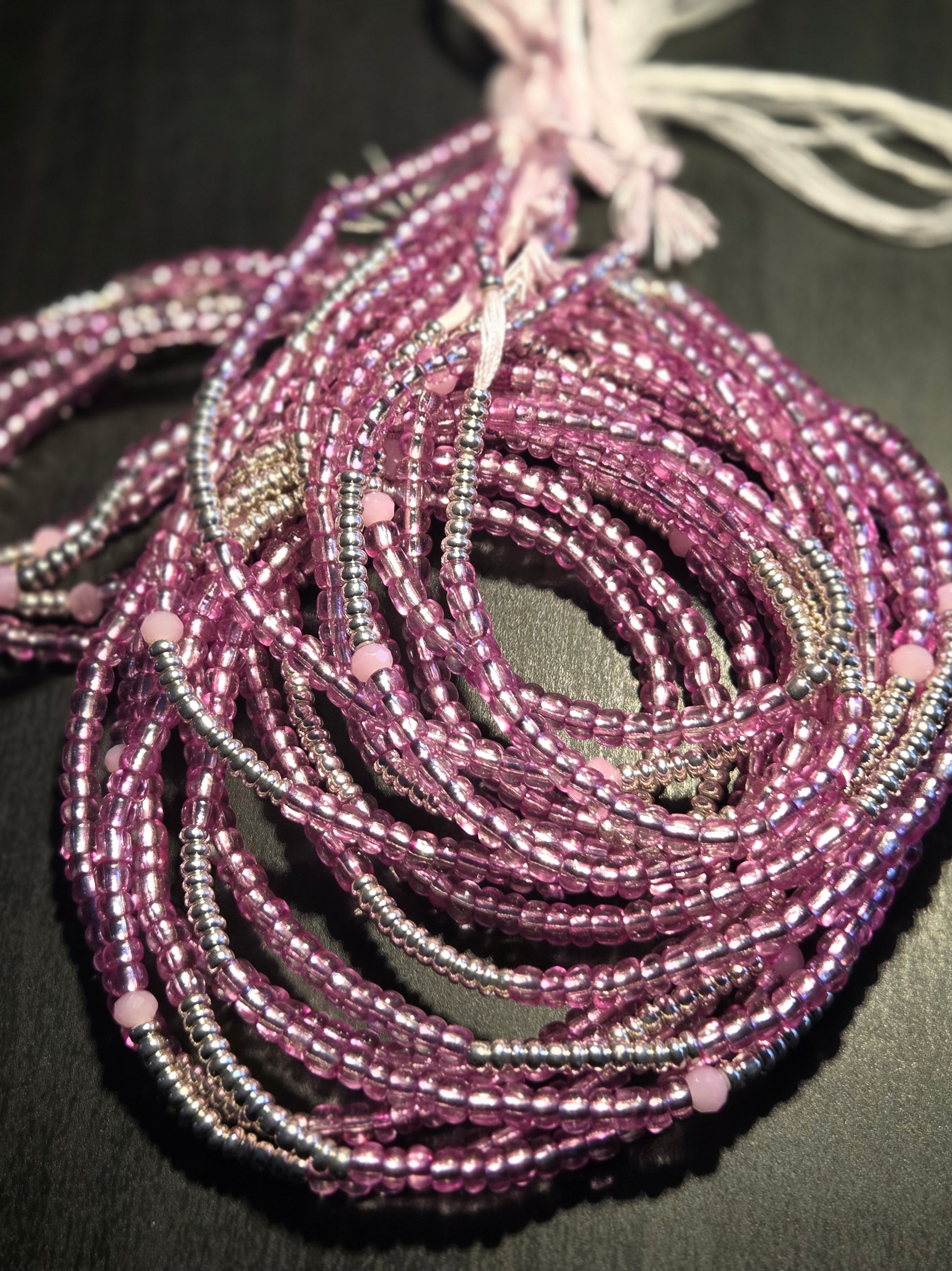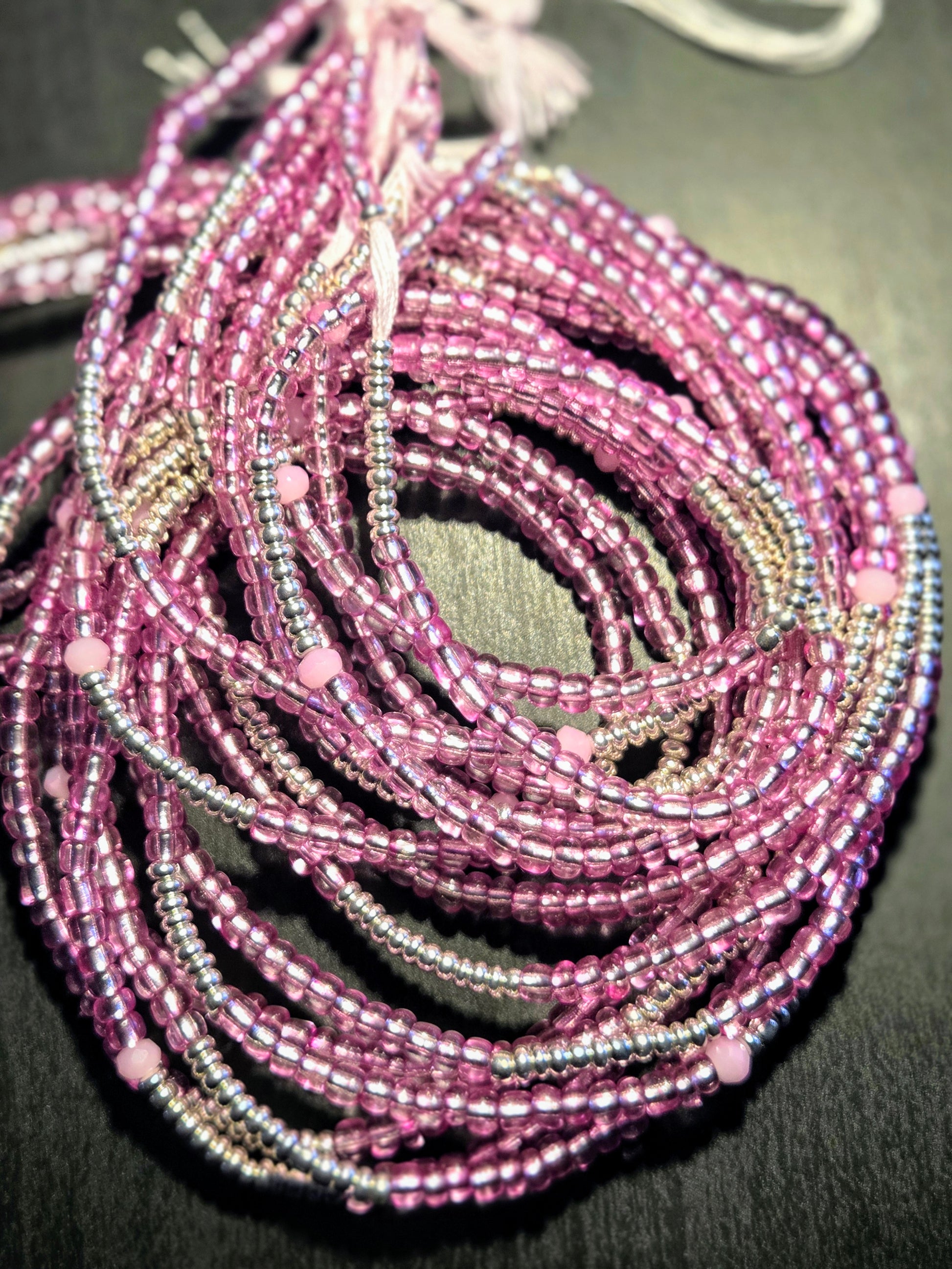 Where sensual elegance meets radiant energy, Sativa waistbead is the sleek allure of silver with the soft glow of luminous pink — a visual melody of sweetness, serenity, and upliftment.