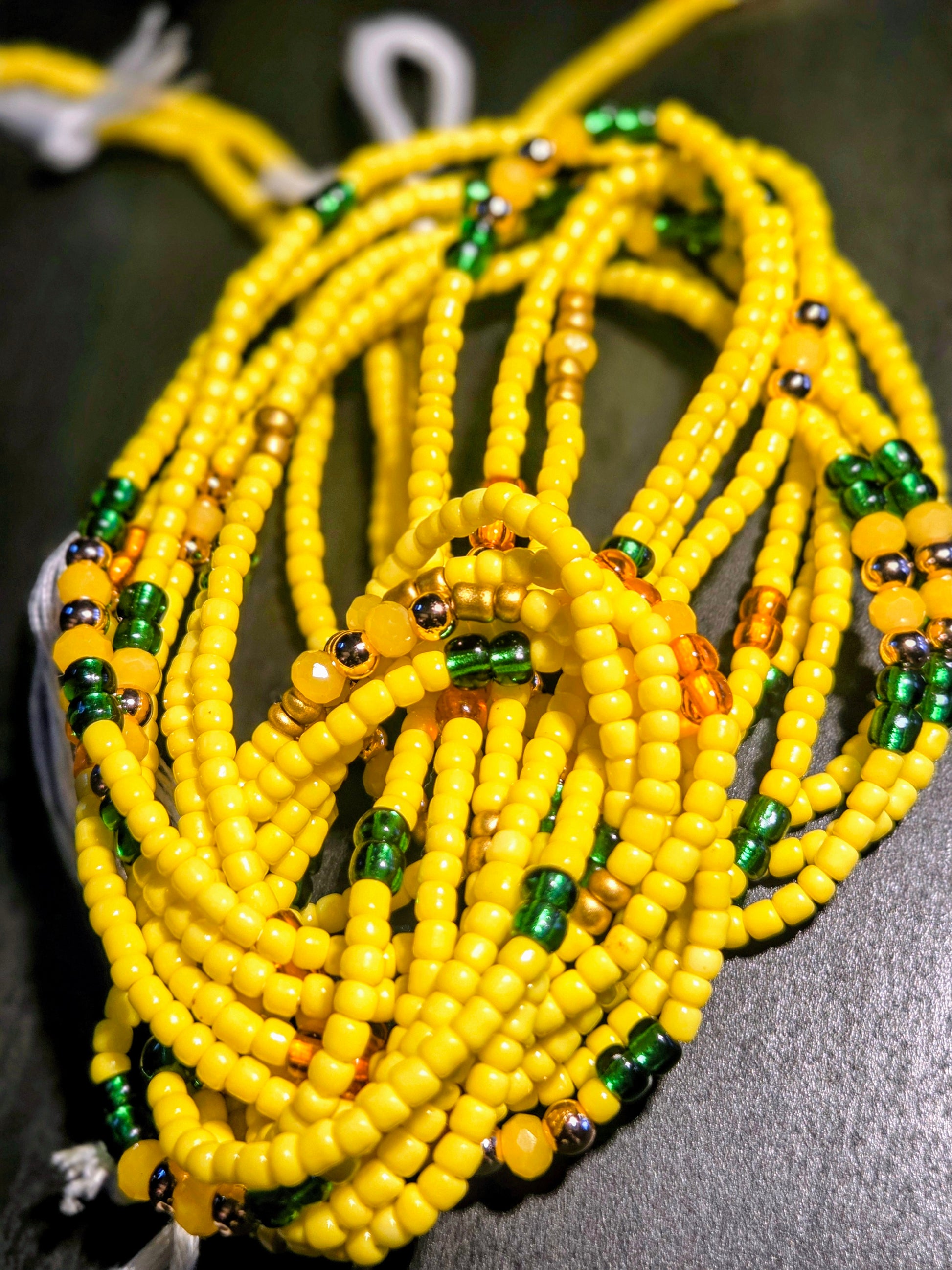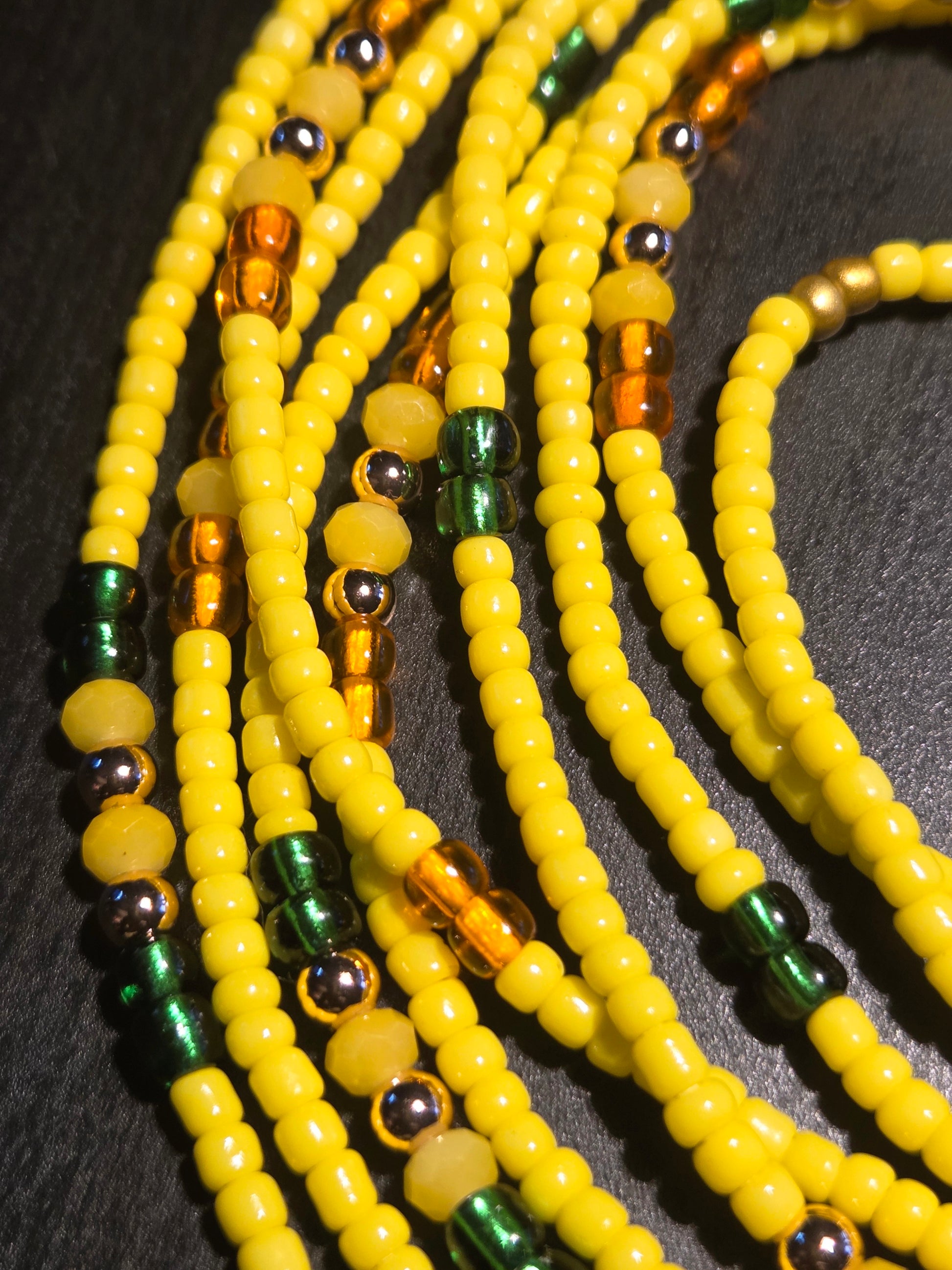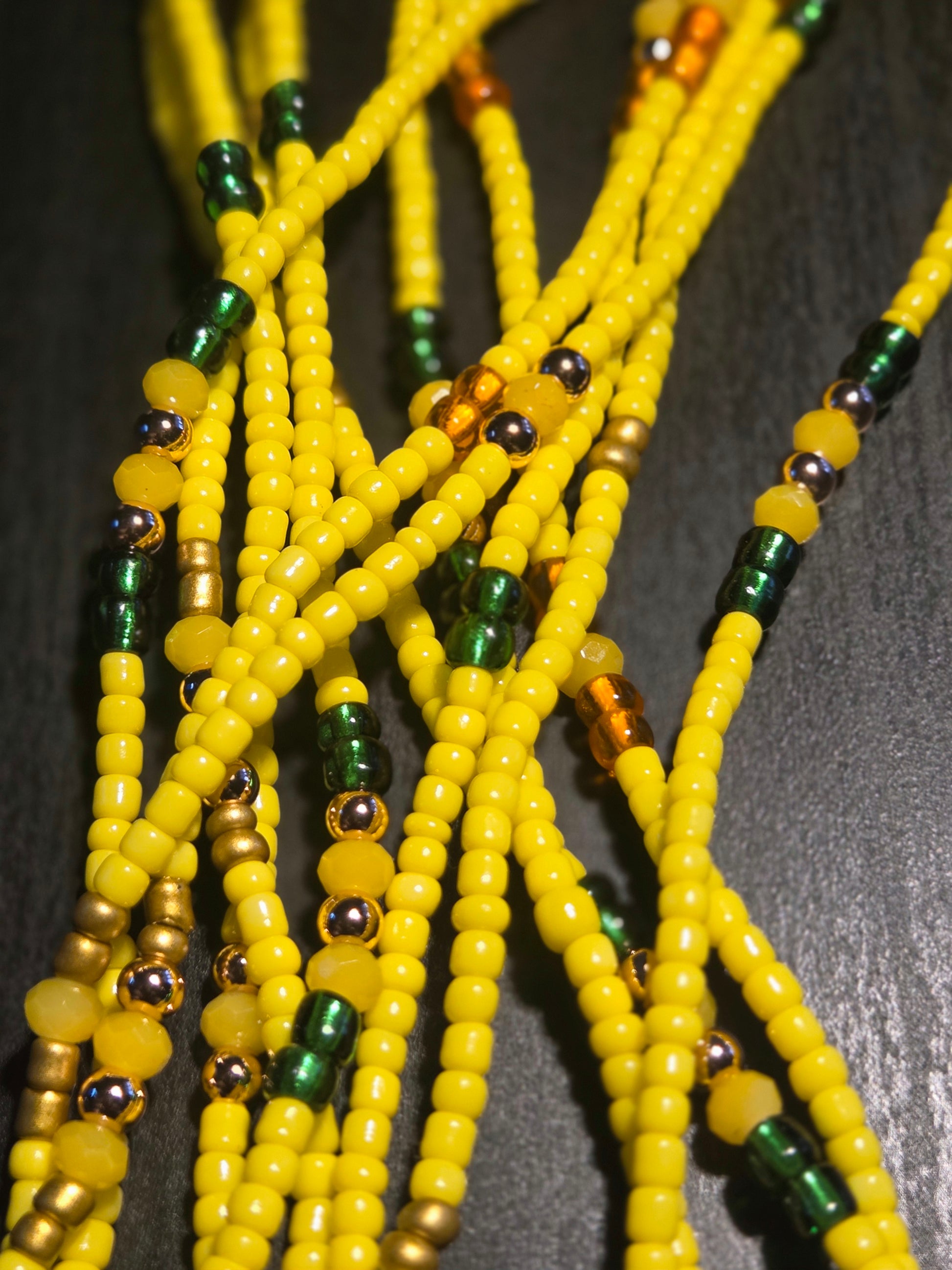 Each waistbead is a flirtation with sunshine—yellow for joy, green for growth, orange for vitality, and copper for grounding sensuality. Citrus Bae waistbead is for those who are sweet but never dull, bold but never loud. She owns her power, giggles freely, and glows from the inside out. Perfect for mood-lifting, intention-setting, or simply adding a splash of fun to your sacred adornment.