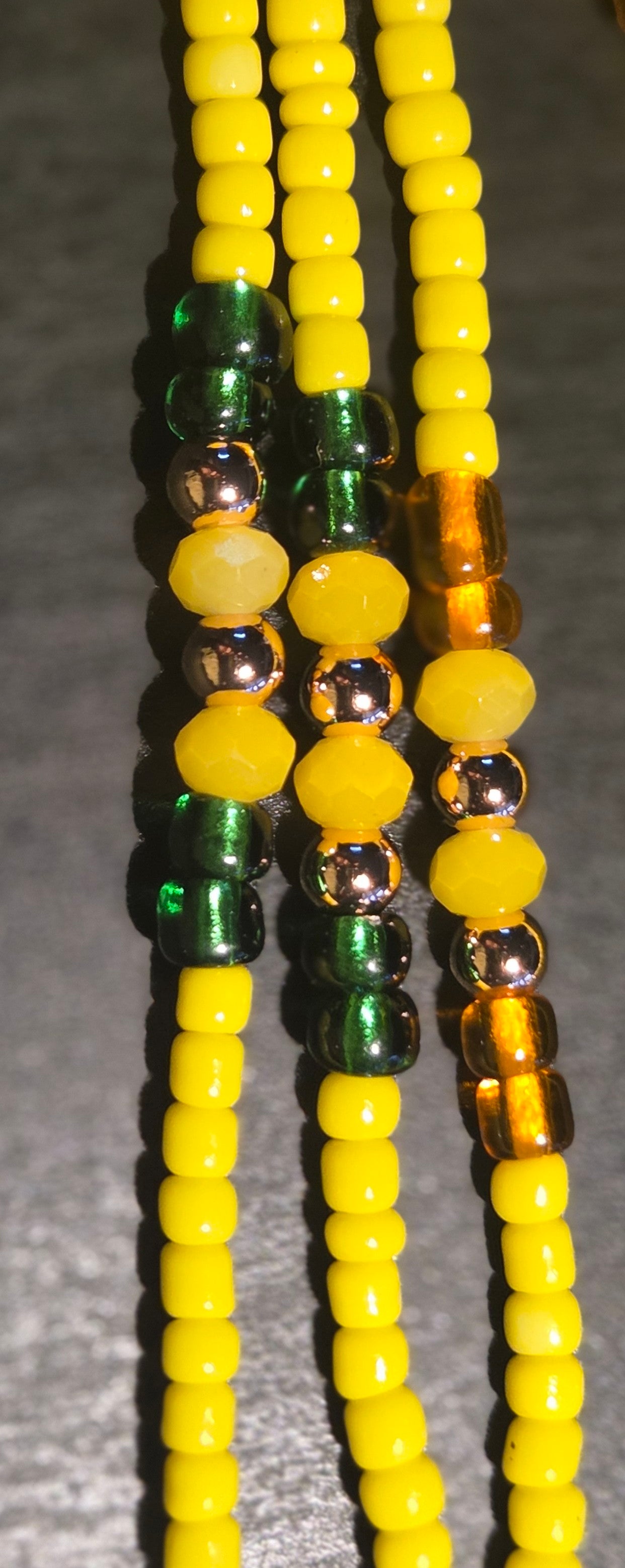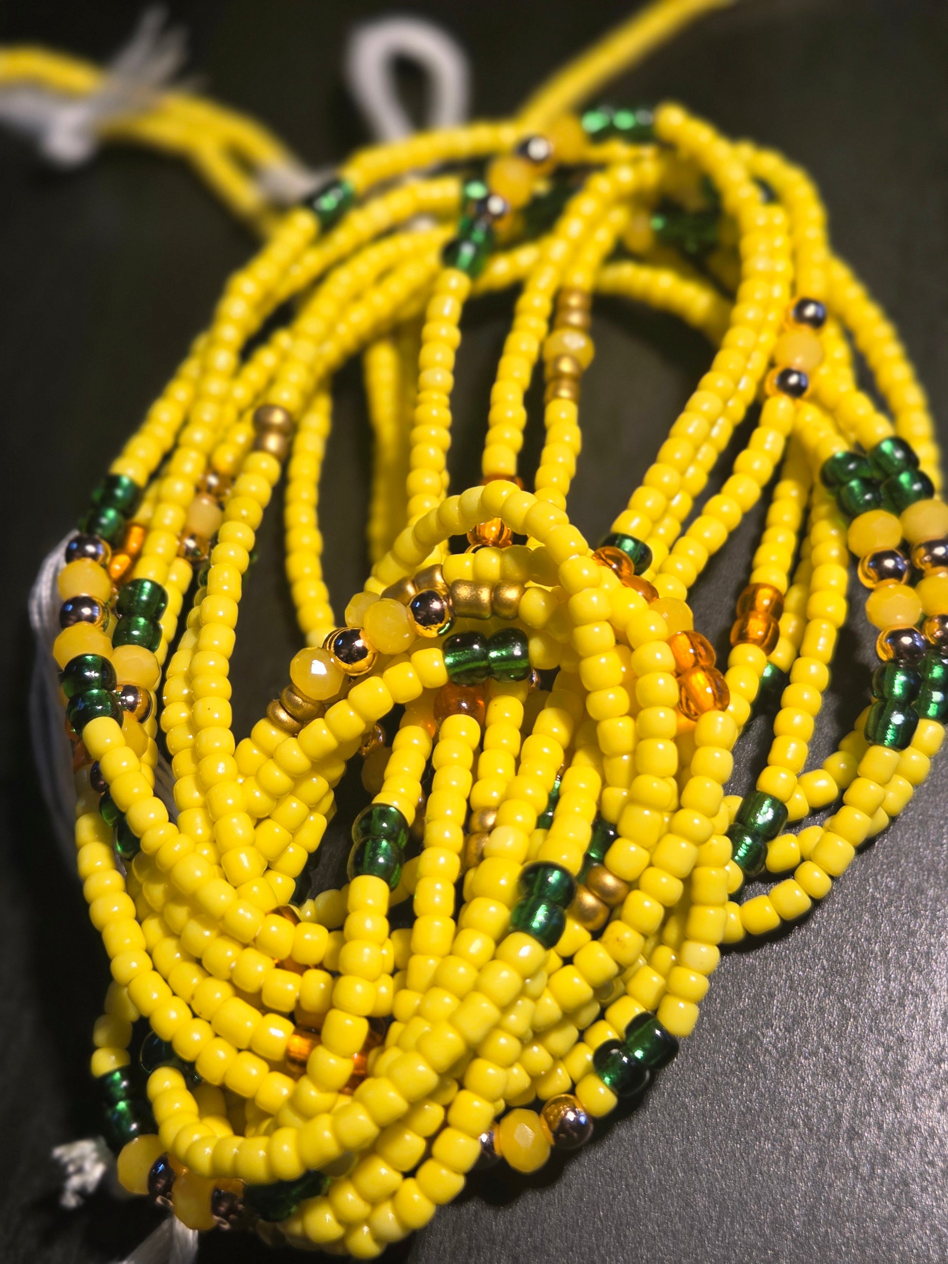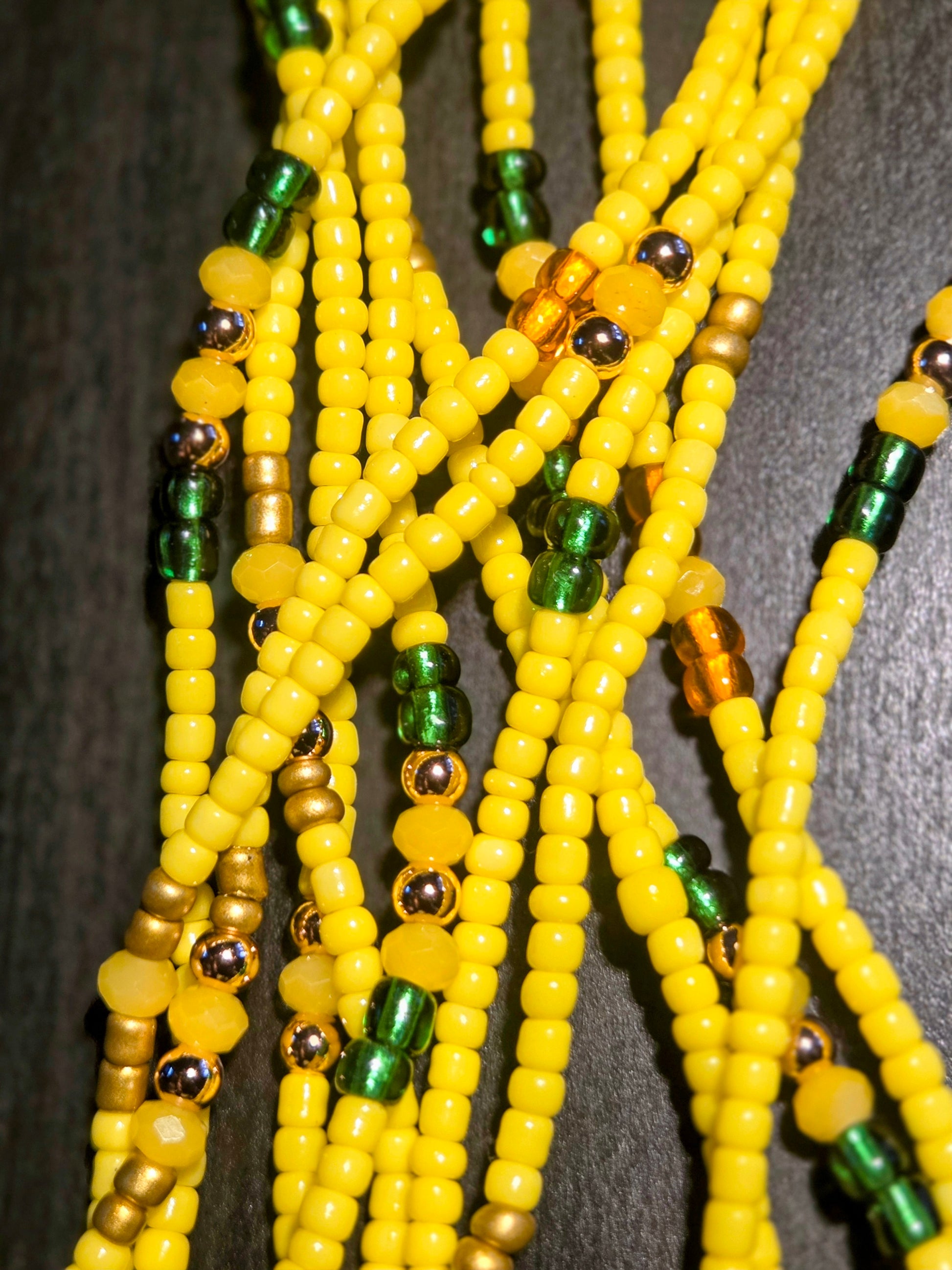 Each waistbead is a flirtation with sunshine—yellow for joy, green for growth, orange for vitality, and copper for grounding sensuality. Citrus Bae waistbead is for those who are sweet but never dull, bold but never loud. She owns her power, giggles freely, and glows from the inside out. Perfect for mood-lifting, intention-setting, or simply adding a splash of fun to your sacred adornment.